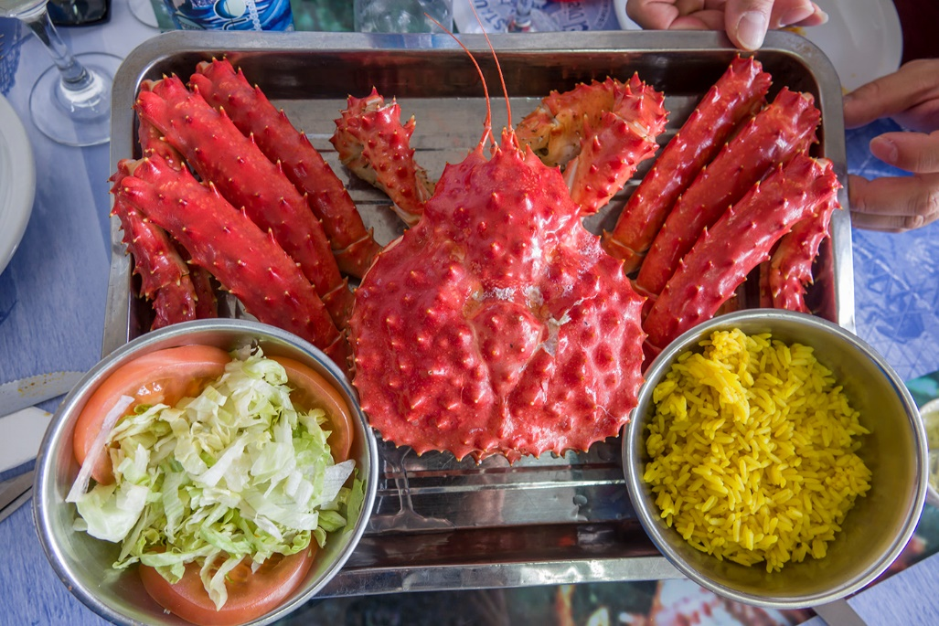 帝王蟹分布在寒冷的海域,它们的体型巨大,肉质美味,是餐桌上的佳肴。人们吃到的帝王蟹往往来自北半球,比如:阿拉斯加、勘察加、北海道等地,殊不知南大洋也产帝王蟹。听说,由于南大洋的帝王蟹过多,还影响到了南极的生态平衡呢。那么,吃货们还不赶紧显示一下英雄本色,为了保护环境也要来上一只啊!